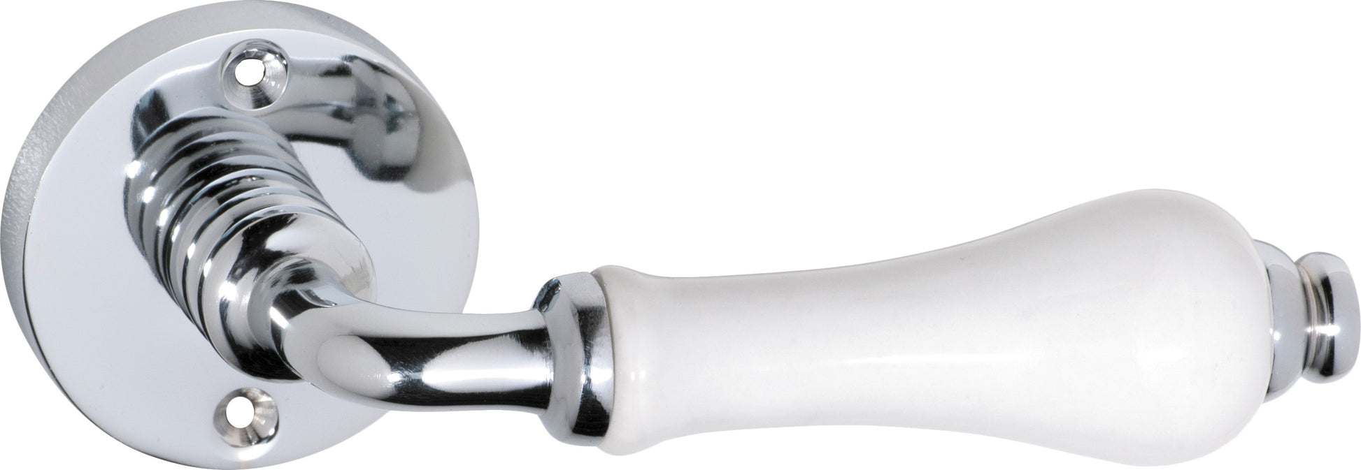 Door Lever Exeter Round Rose Pair White Porcelain Chrome Plated D50xP66mm