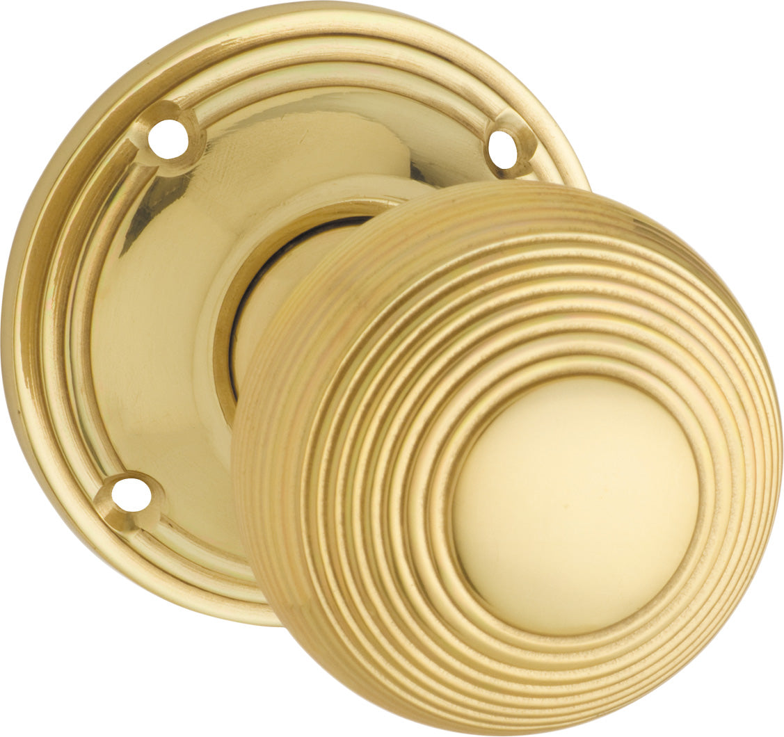 Door Knob Reeded Mortice Pair Polished Brass D51xP81mm BP60mm