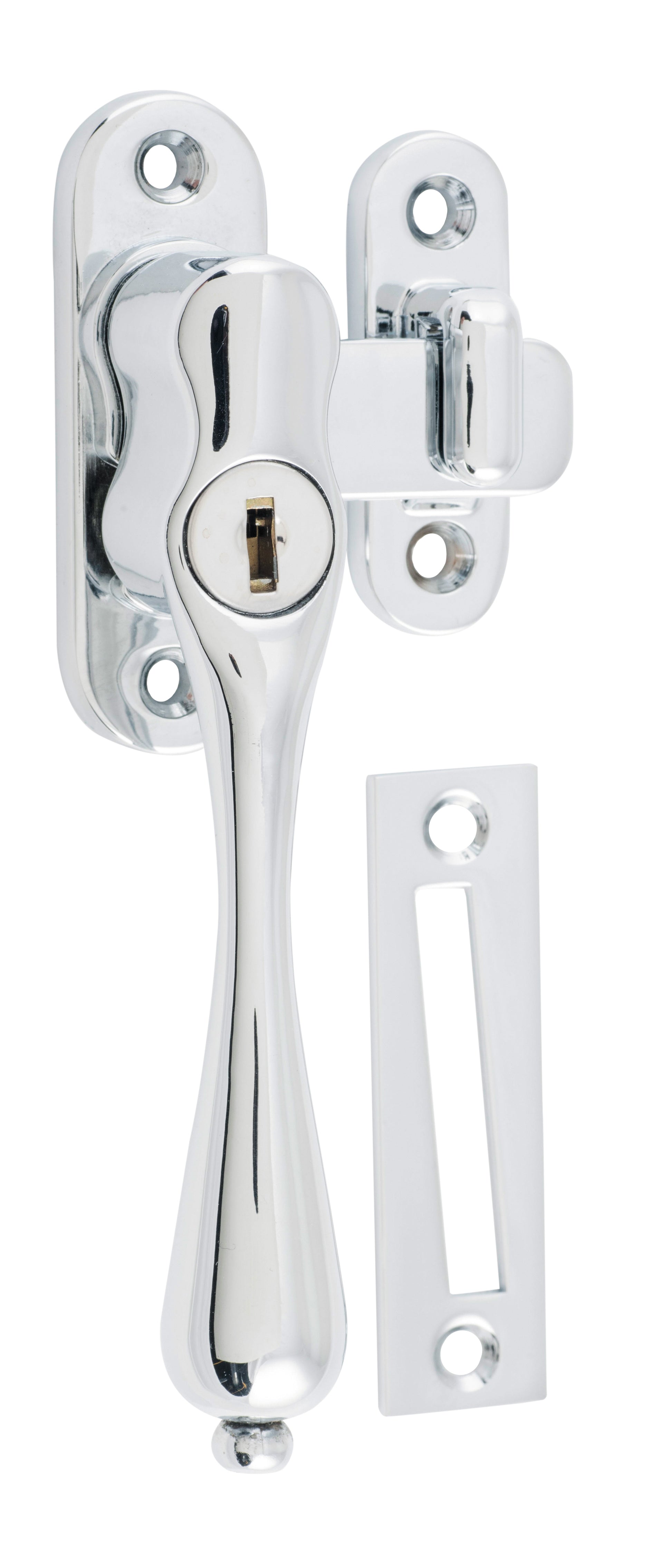Casement Fastener Locking Teardrop Left Hand Chrome Plated W28xP34mm Drop 115mm