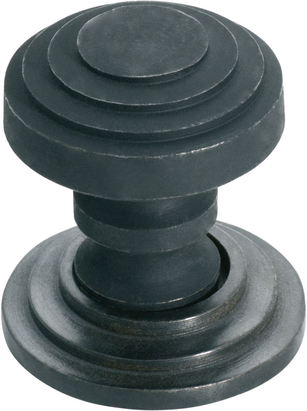 Cupboard Knob Stepped Iron Backplate Matt Black D30xP40mm