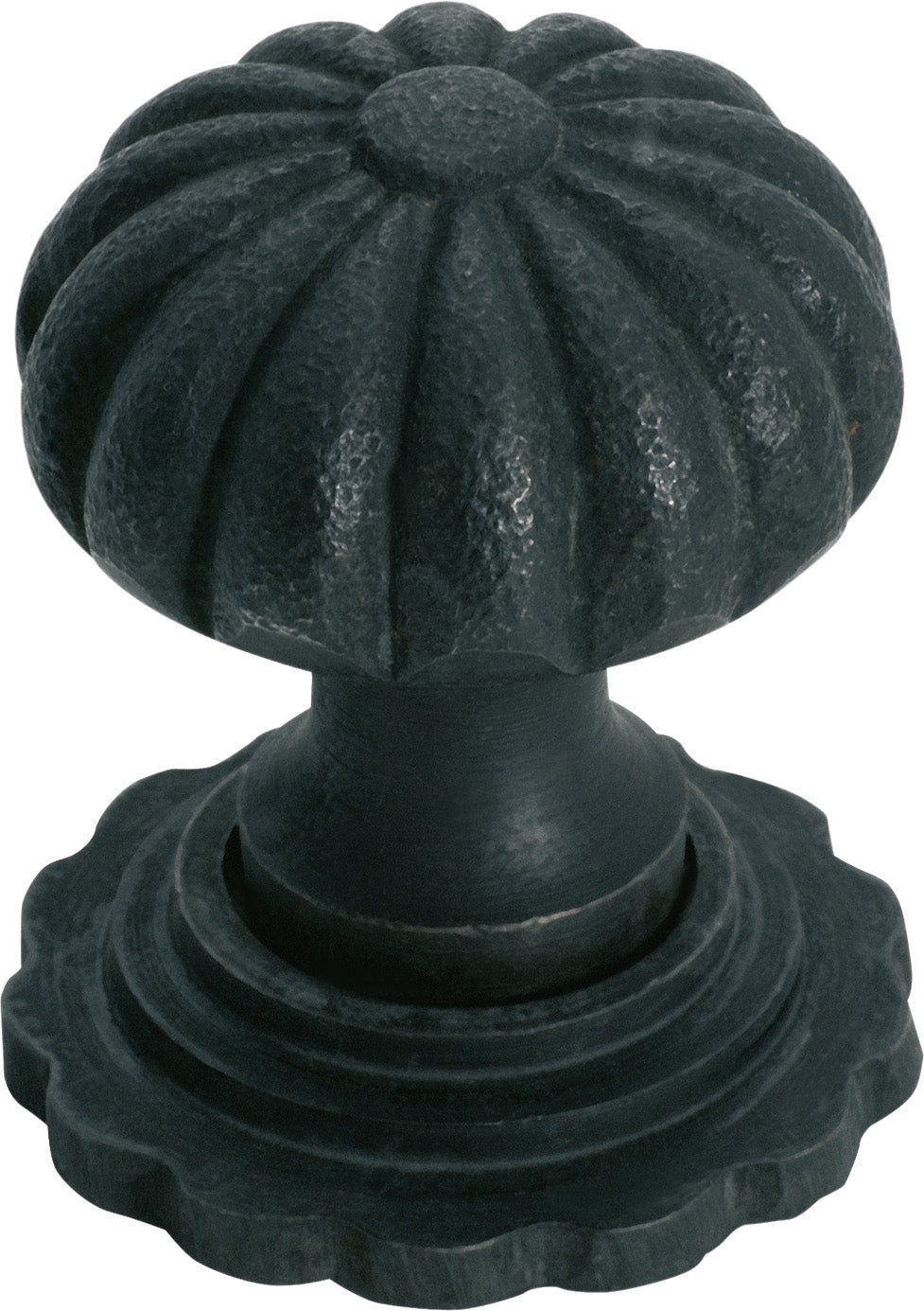 Cupboard Knob Fluted Iron Backplate Matt Black D32xP44mm