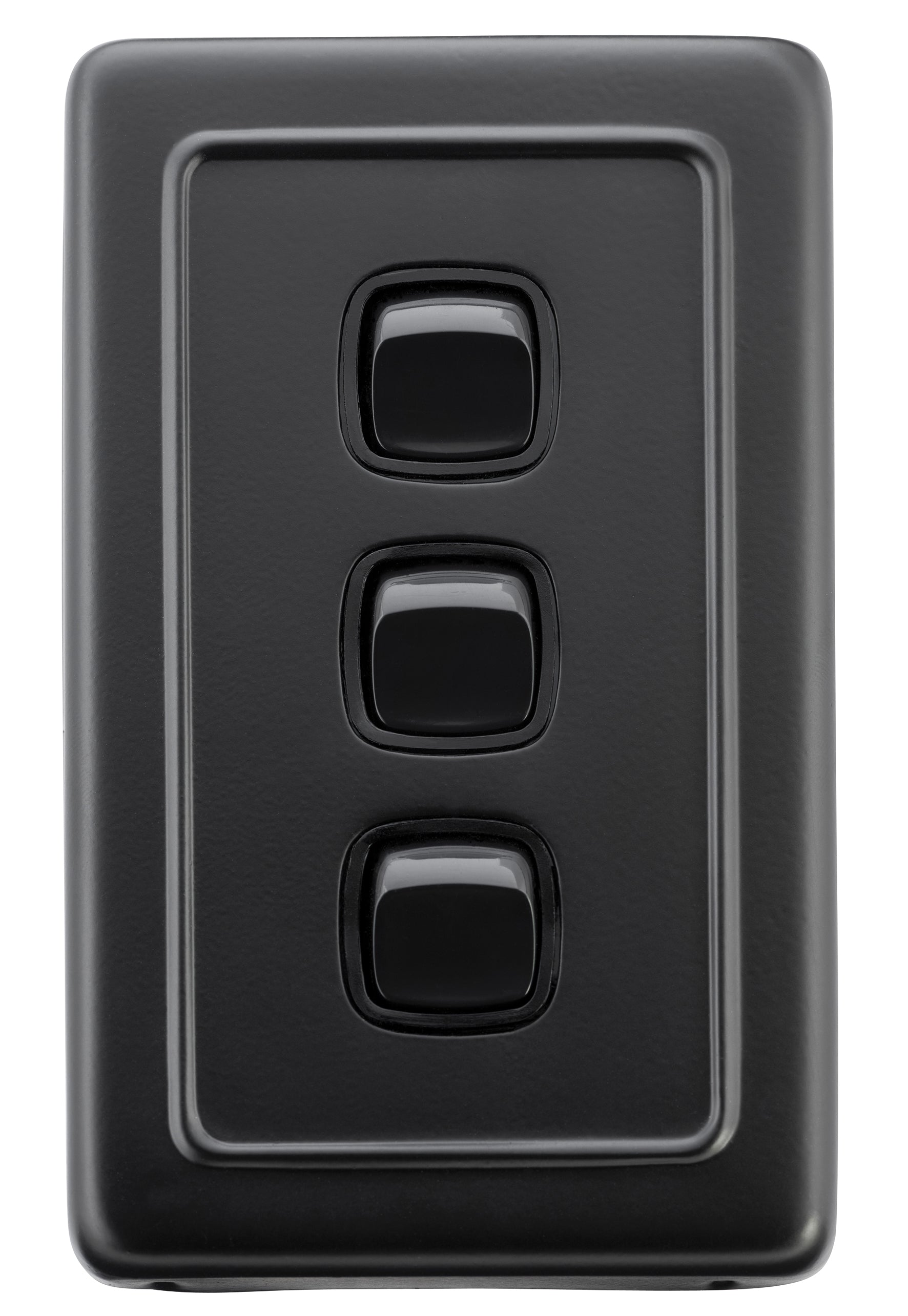 Switch Flat Plate Rocker 3 Gang Matt Black H115xW72mm
