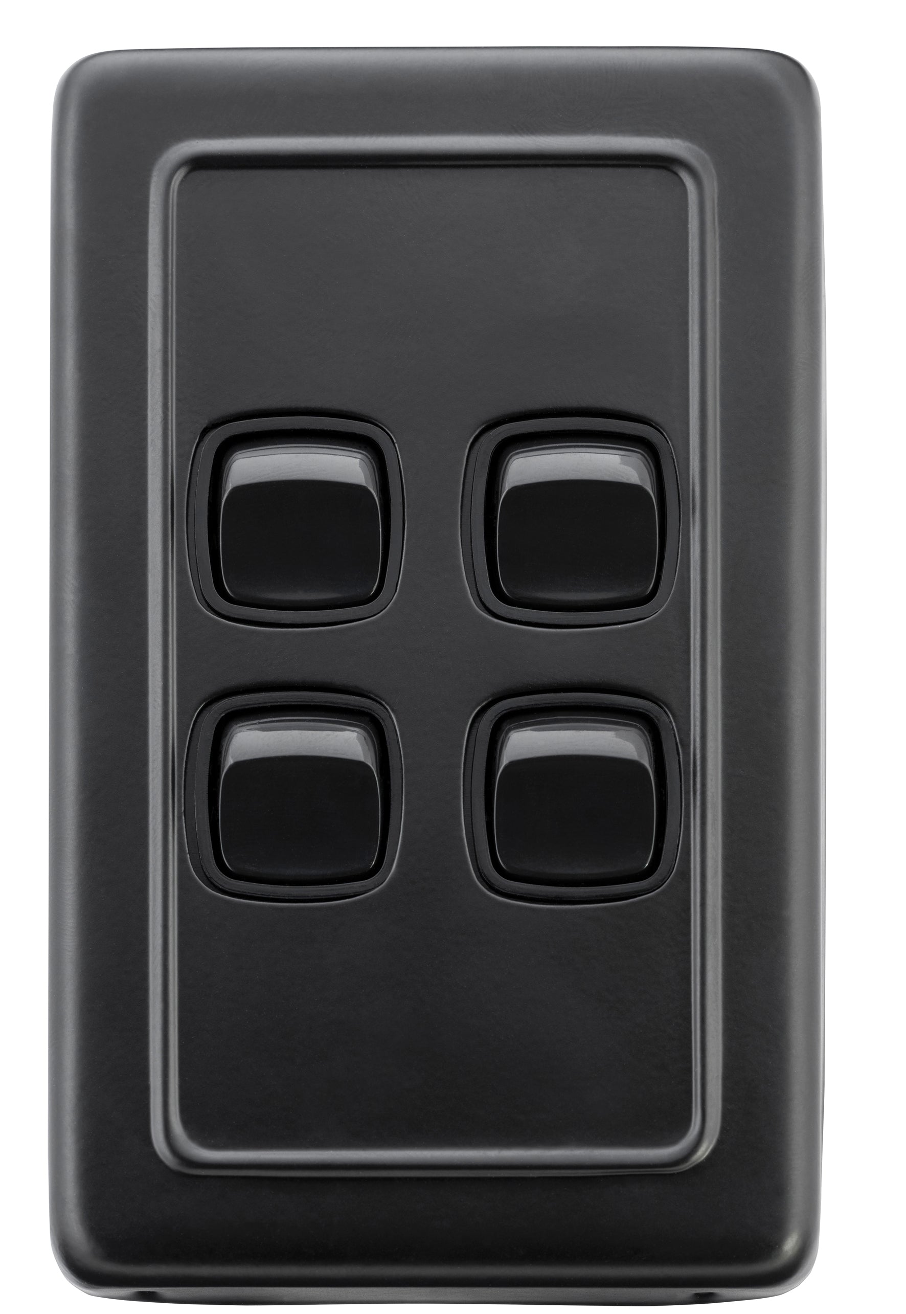 Switch Flat Plate Rocker 4 Gang Matt Black H115xW72mm