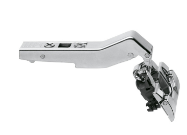 CLIP top angled hinge 79B9595 opening angle: 95° cabinet angle: 20° BLUMOTION hinge cup assembly: INSERTA hinge cup material: Steel hinge cup closing mechanism: with spring side adjustment: +/- 2 mm depth adjustment: plus 3/minus 2 mm, convenient with spiral screw