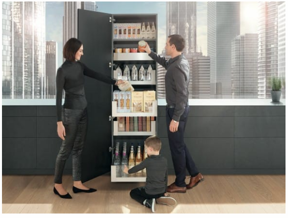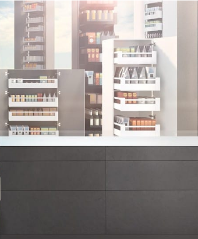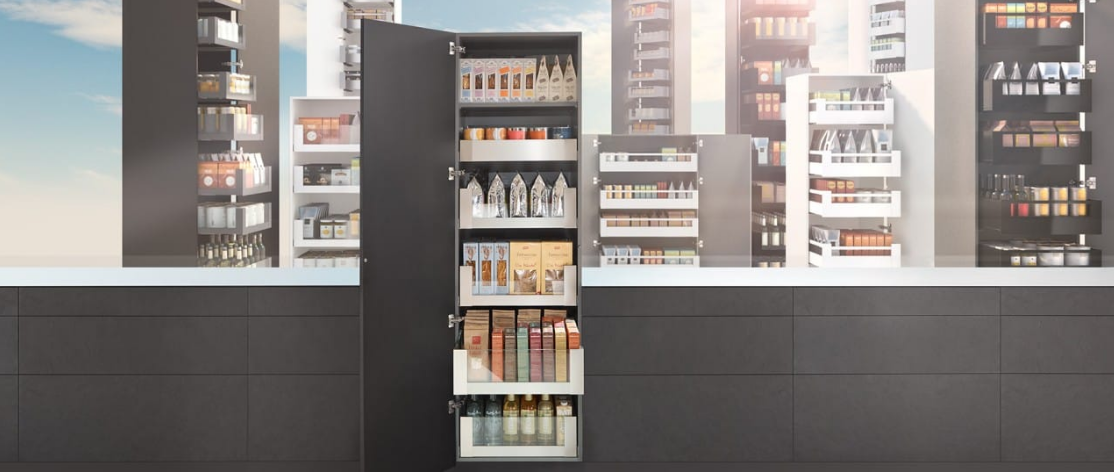 The SPACE TOWER pantry unit can be implemented with LEGRABOX, MERIVOBOX and TANDEMBOX - three box systems that provide endless scope for design. Kitchens can have coherent designs to meet customers’ personal requirements.