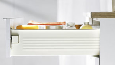 Drawer type:Single extension METABOX material:Steel Height of Drawer Side:H=56,86-120-150 mm Nominal Length: 450 mm Drawer side/drawer profile fixing:Screw-on vers. Blumatic:Integrated Blumatic Lock-out stop:With pull-out stop and stay-open feature