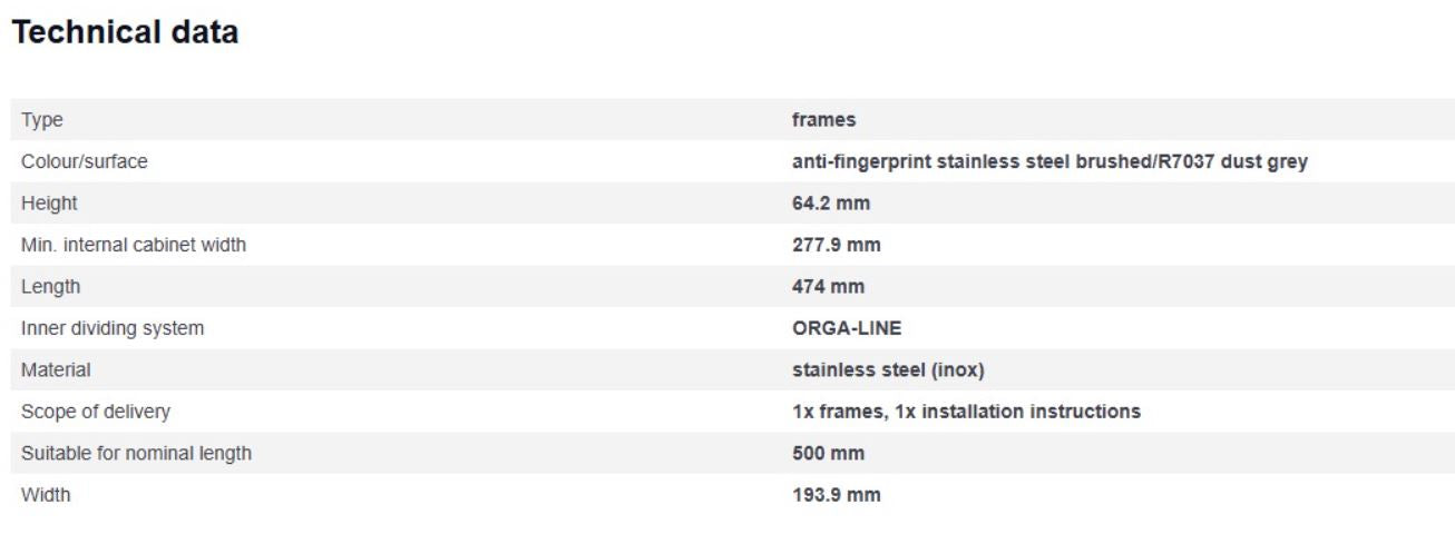 ORGA-LINE Drawer dividing system. Type of drawer dividing system: Utensil divider set Nominal Length:450- 550 mm