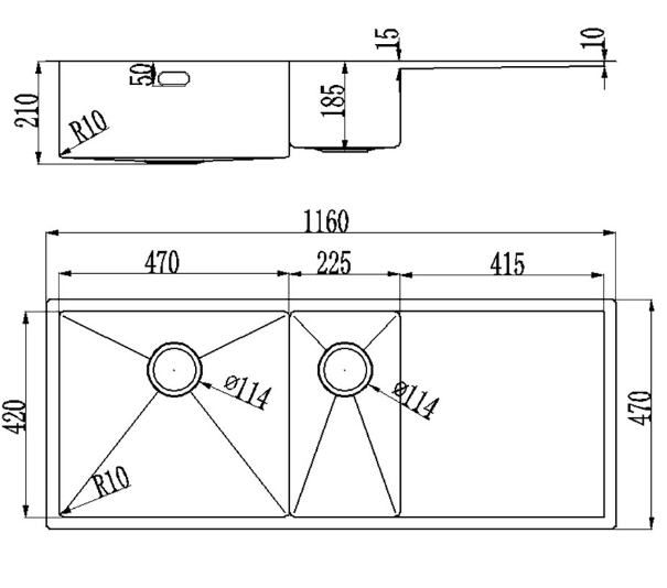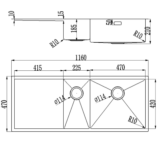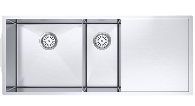 Stratus R10 designer series offer a large capacity main bowl, and a sleek flat drainer. The drainer is on a gradient to allow water to drain away. The stratus is a fabricated sink, premium quality and robust