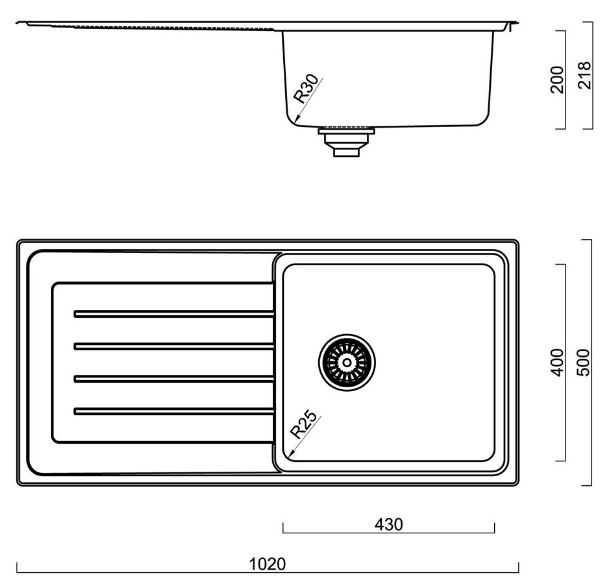 The Delta is a premium grade insert with a modern sleek drainer pattern. The sinks is a generous size, and is perfect for top mount or under mount and can also be welded into stainless steel.