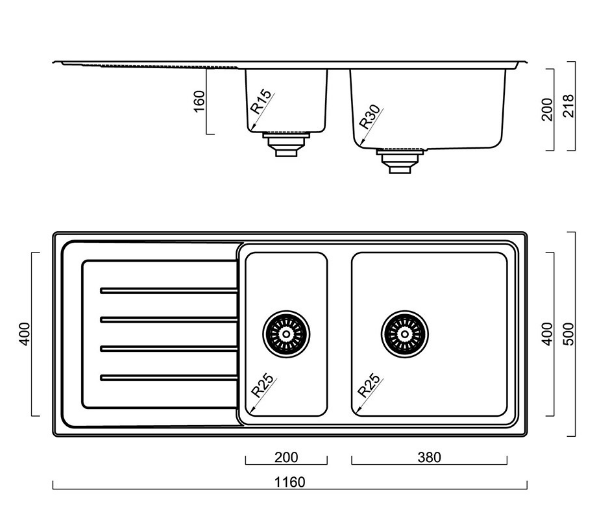 Technical specifications : BOWL WITH 1/2 DRAINER