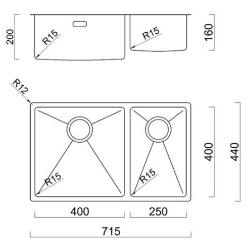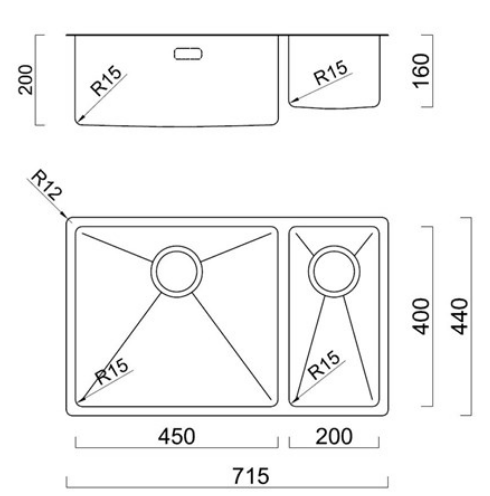 The 15mm (R15) radius corners offer maximum volume over the classic style sink, and the hub is easy to clean and maintain.