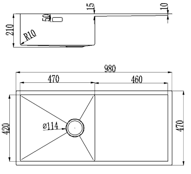 BURNS & FERALL HAND MADE STRATUS 470 x 420 x 210 BOWL AND DRAINER STAINLESS STEEL