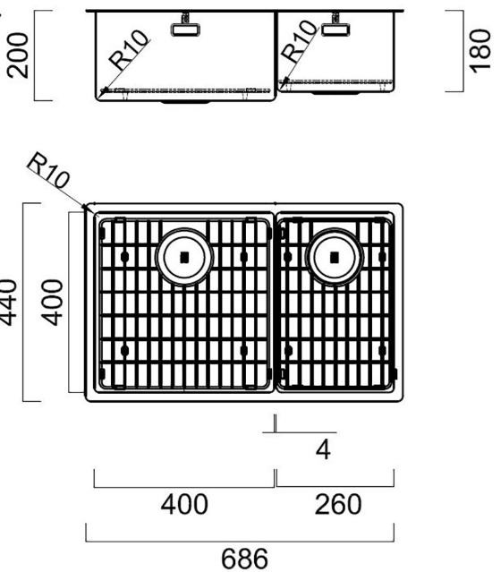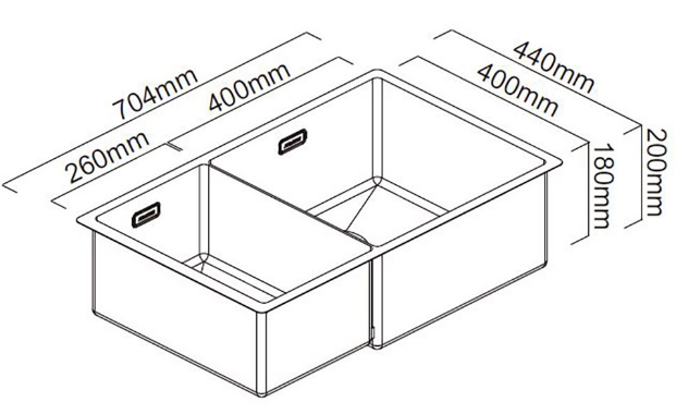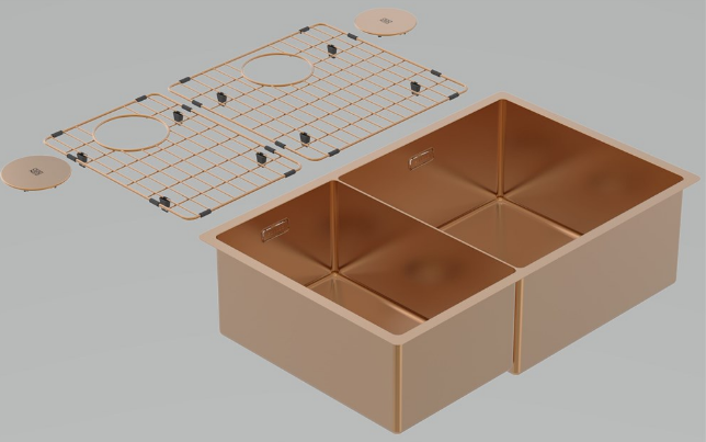 BURNS & FERALL ZOMODO PVD DOUBLE SINK & GRID LEFT HAND / RIGHT HAND -