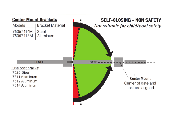 Note: All D&D SureClose® hinges and closers come packaged with the gate mounting bracket included.