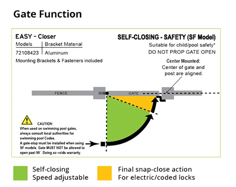 CAUTION: When installing SureClose® Closers or Hinges to a swimming pool gate always confirm any safety requirements with your local Council or authorities to ensure compliance.