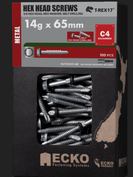 Ecko Hex Sds (Self-Drilling Point) Screws Neo C4 12G-65,14G-65,75mm Pack of 100