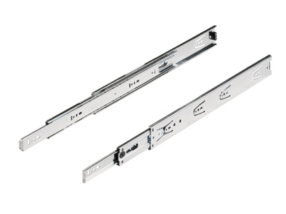 Hettich Germany Standard Ball Bearing Runner, Mounted on side, Dimensions ( Height 46mm x 12.7mm Width ) Installed Width Length - Available in 9 sizes : 250mm ,300mm ,350mm ,400mm ,450mm ,500mm ,550mm ,600mm ,650mm - 45 kg Blue Passivated ,Galvanised