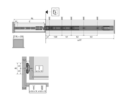 Hettich Germany Soft Close ( Silent System ) Ball Bearing Runner, Mounted on side, Dimensions ( Height 46mm x 12.7mm Width ) Length - Available in 6 sizes : 300mm ,400mm ,450mm ,550mm ,600mm ,650mm - 35 kg