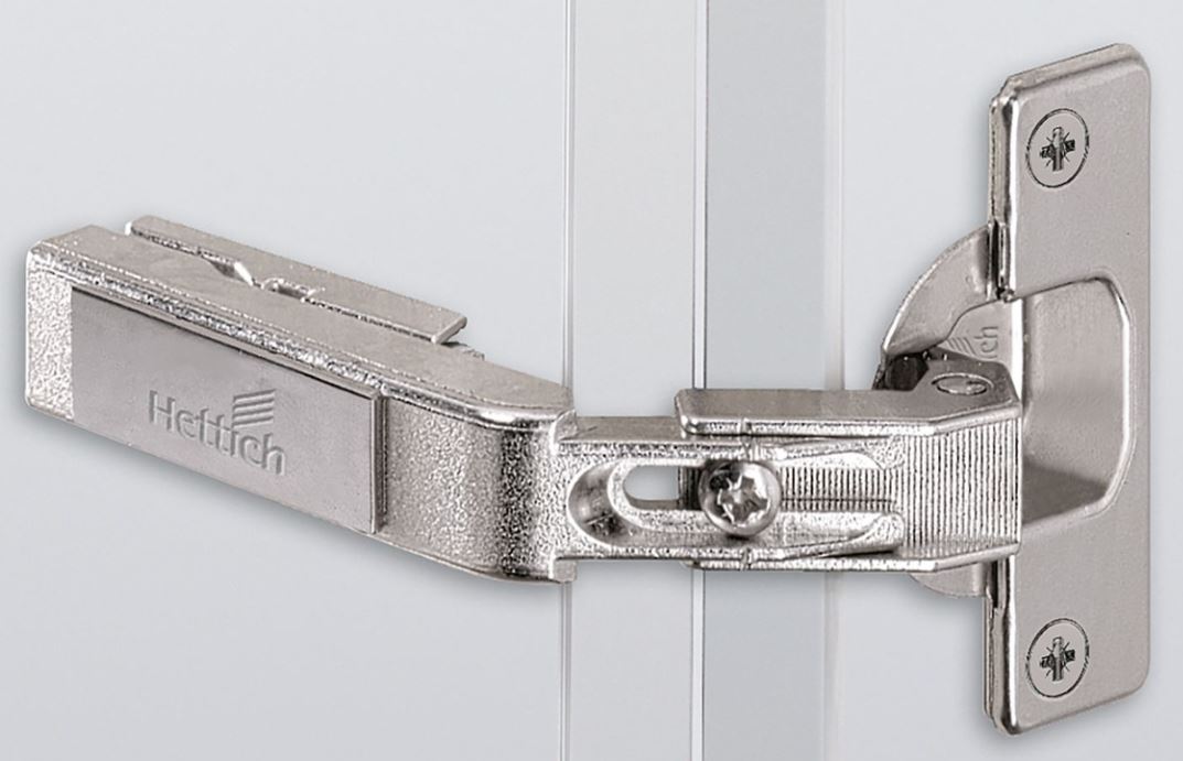 Hettich Germany Intermat hinge for corner cabinet folding doors without self closing feature (Intermat 9930), overlay, Opening angle 50° / 65°, TH-drilling pattern 52 x 5.5 mm, with expanding sockets (ø 10 x 11)