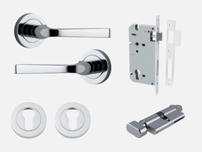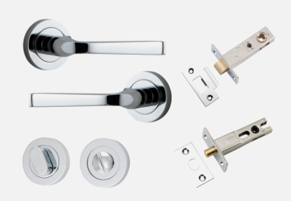 The Annecy lever can be purchased as a passage, privacy or entrance kit, which includes all components required for your door to function