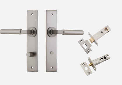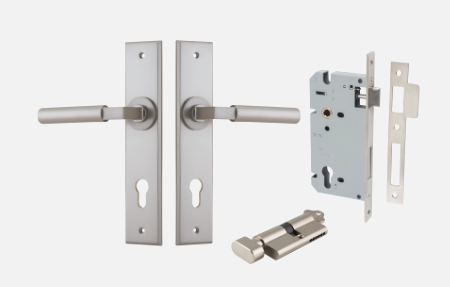 The Berlin lever can be purchased as a passage, privacy or entrance kit which includes all components required for your door to function.