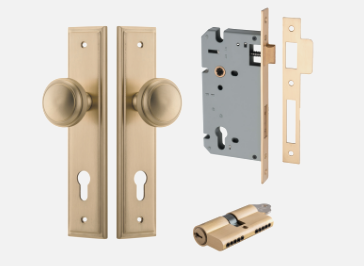Iver Paddington Door Knob 15338 Stepped Backplate Brushed Brass - Passage ,Privacy & Entrance
