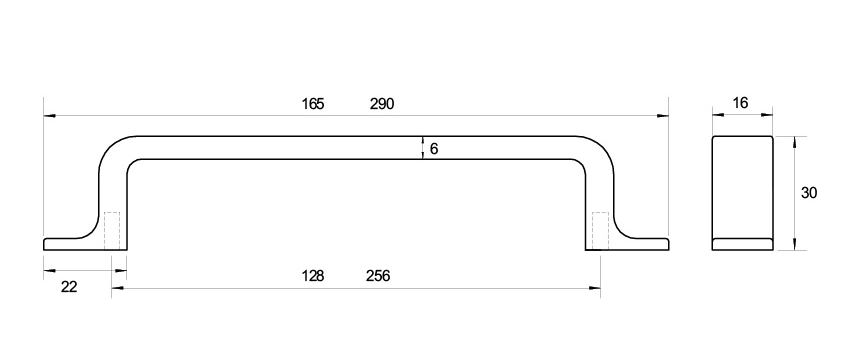 Kethy Rio Hampton Shaker Flat D Handle 128mm Curved Under C to C