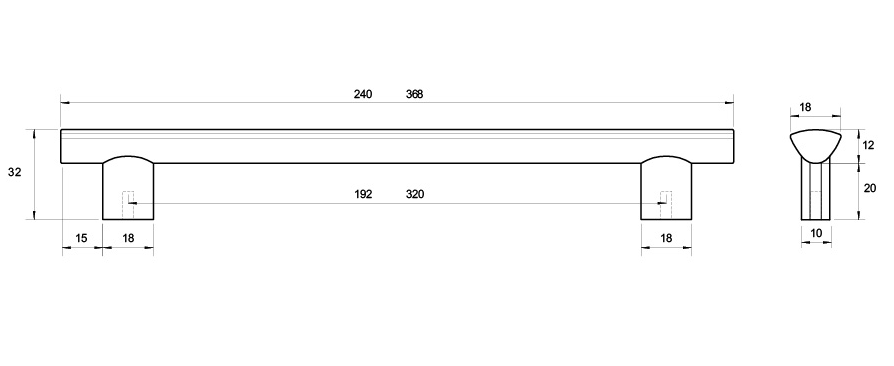 Kethy Aluminium Rail Handle 192mm C to C Brushed INOX