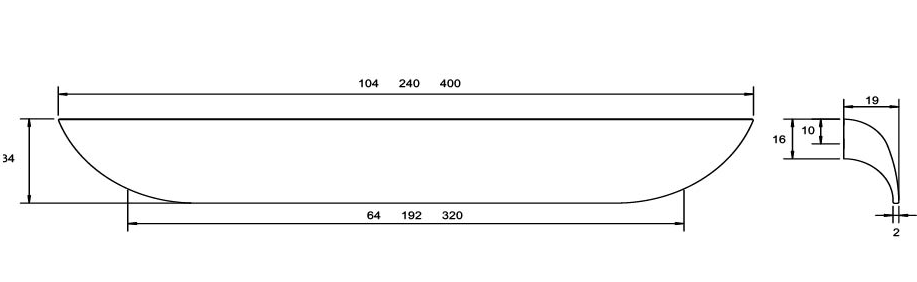 Kethy Archive Slant Handle Curved 320mm C to C Available In 4 Colours : Black Stain ,Oak ,Oak Unfinished ,Walnut