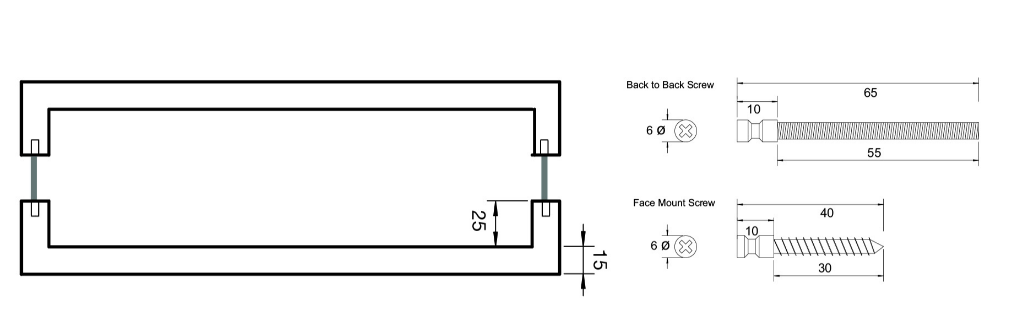 Kethy Biella Stainless D Handle 15.8mm Square Back to Back Stainless Steel