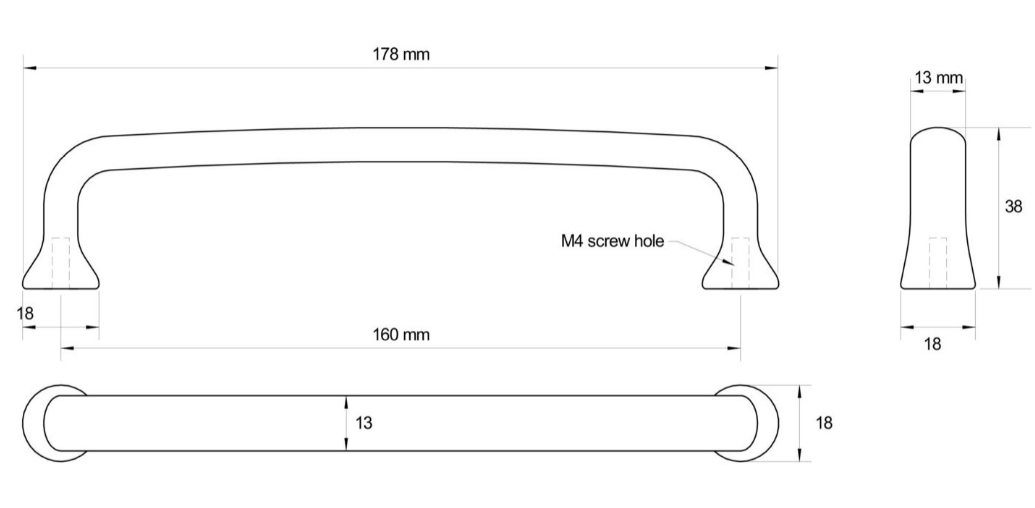 Kethy Bilbao Cast Iron Handle 160mm C to C Black