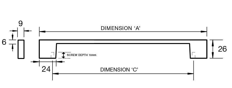Kethy Binda Handle 192mm Thin Flat D Handle Wide Feet C to C Available In 4 Colours : Matt Champagne Paint ,Matt Graphite Paint ,Black Paint Matt#4 ,Matt Silver Paint