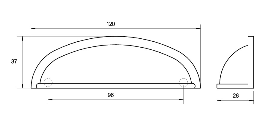 Kethy Bristol Cup Shell Handle 96mm C to C 120mm O/A