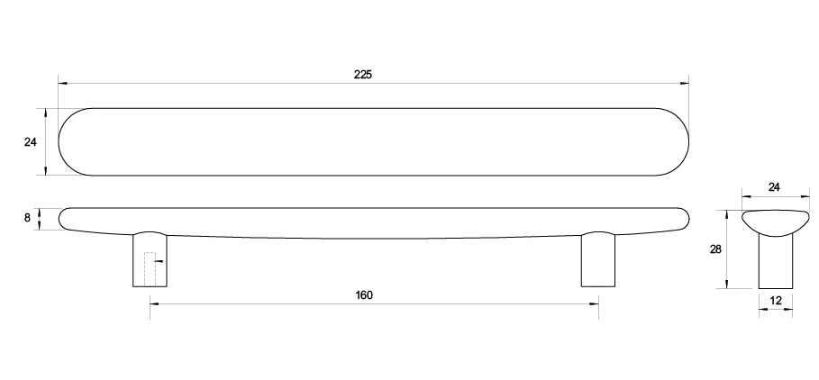 Kethy Brutus Handle 160mm C to C, O/A 225mm