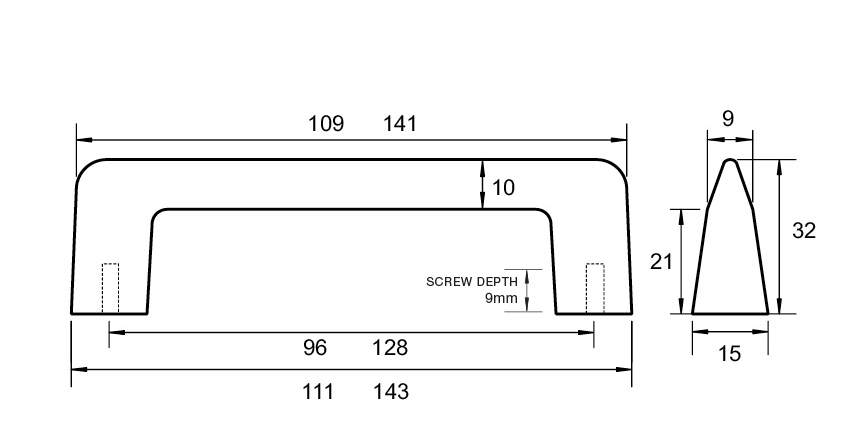 Kethy Case Handle 128mm & 96mm C to C Brushed Nickel