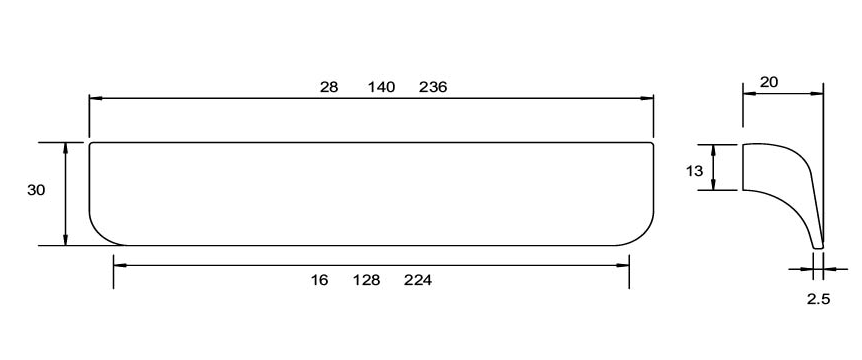 Kethy Clare Aluminium Pull 16mm Slant Handle Curved C to C