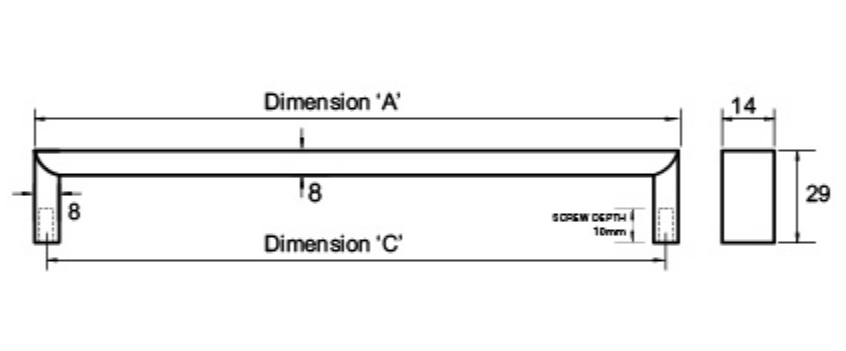 Kethy Como Stainless D Handle 14mm Flat Top Polished S/Steel Handle C to C Available In 5 Sizes : 104mm x 96mm ,136mm x 128mm ,168mm x 160mm ,200mm x 192mm ,232mm x 224mm