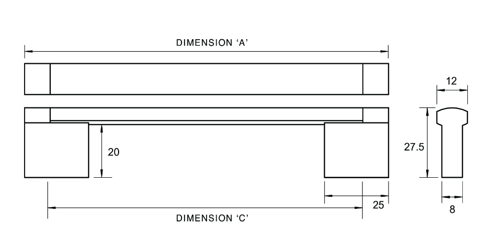 Kethy Flinders Stainless D Handle 12mm Round Top Stainless Steel C to C