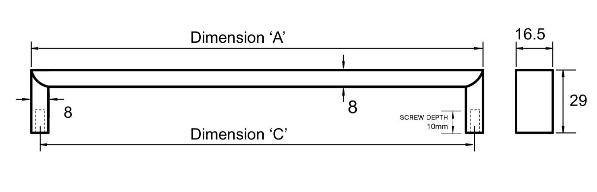 Kethy Latina Stainless D Handle 16.5mm Flat Top Stainless Steel Handle C to C Available In 4 Sizes : 400mm x 393mm ,500mm x 493mm ,600mm x 593mm ,700mm x 693mm