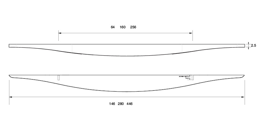 Kethy Narrow Tapered Cup Handle 280mm O/A 160mm C To C