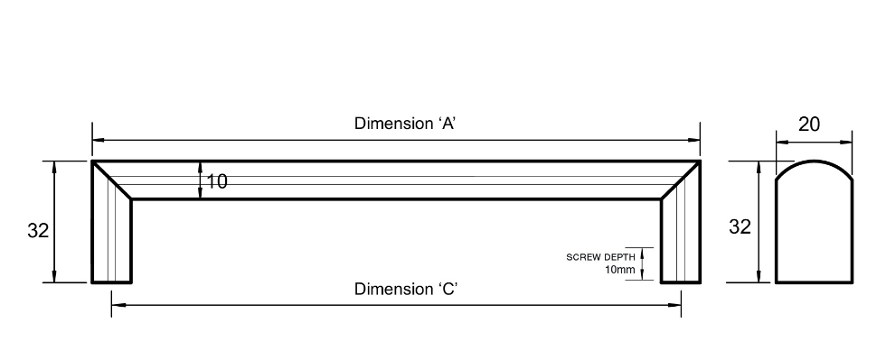 Kethy Pavia Stainless D Handle 19mm Oval Stainless Steel Handle C to C Available In 4 Sizes : 500mm x 490mm ,600mm x 590mm ,700mm x 690mm ,800mm x 790mm