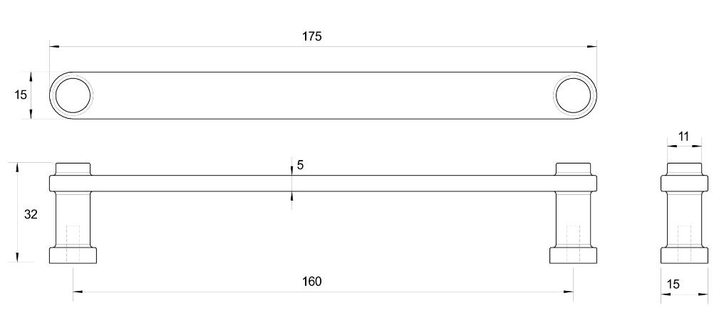 Kethy Pillar D Handle 160mm C to C Black Paint Matt#7