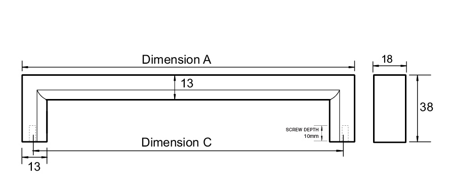 Kethy Regio Stainless D Handle 18mm Round Under Stainless Steel Handle C to C Available In 5 Sizes : 140mm x 128mm ,172mm x 160mm ,204mm x 192mm ,236mm x 224mm ,300mm x 288mm