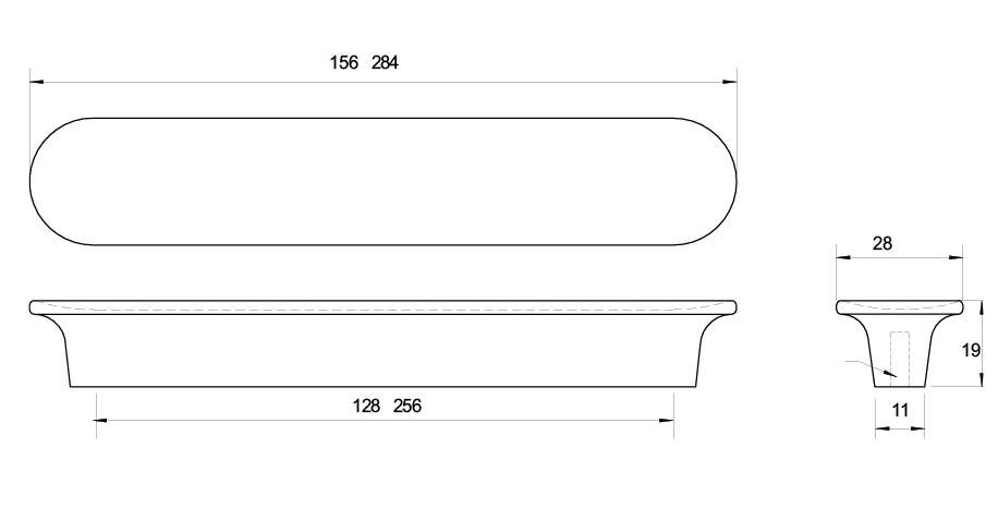 Kethy Ribe Handle 128mm C to C, O/A 156mm