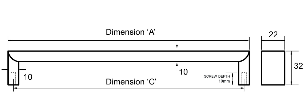 Kethy Roma Stainless D Handle 22mm Flat Top Stainless Steel Handle C to C Available In 5 Sizes : 400mm x 390mm ,500mm x 490mm ,600mm x 590mm ,700mm x 690mm ,800mm x 790mm