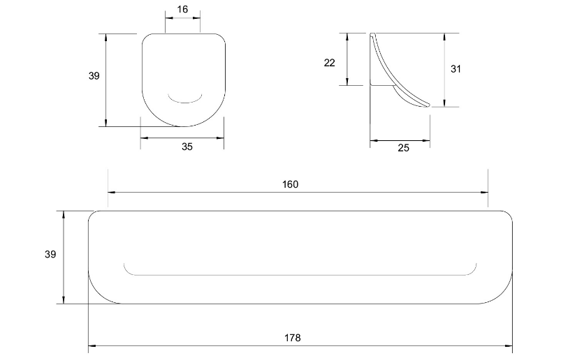 Kethy Ski Pull 160mm C to C 181mm O/A Black Paint Matt#7 & Stainless Effect