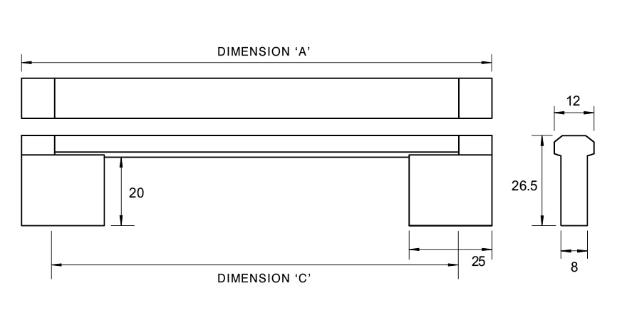 Kethy Tasman Stainless D Handle 12mm Two Tone Top Stainless Steel C to C