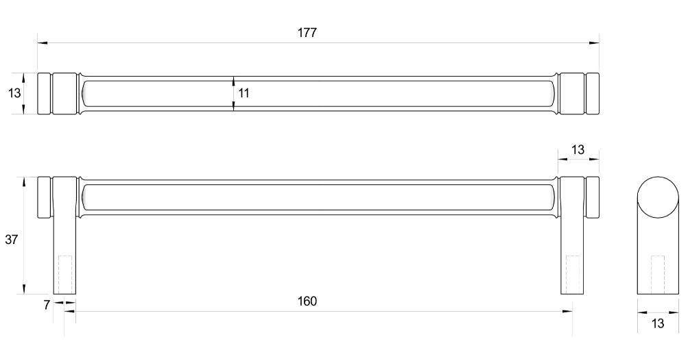 Kethy Torch D Handle 160mm C to C Black Paint Matt#7