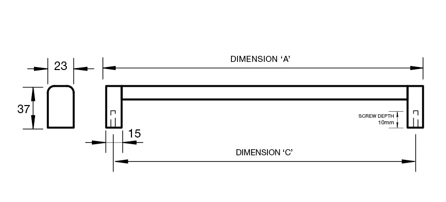 Kethy Torino Stainless D Handle 23mm wide S/Steel Oval with Square Foot C to C Available In 4 Sizes : 500mm x 480mm ,600mm x 580mm ,700mm x 680mm ,800mm x 780mm