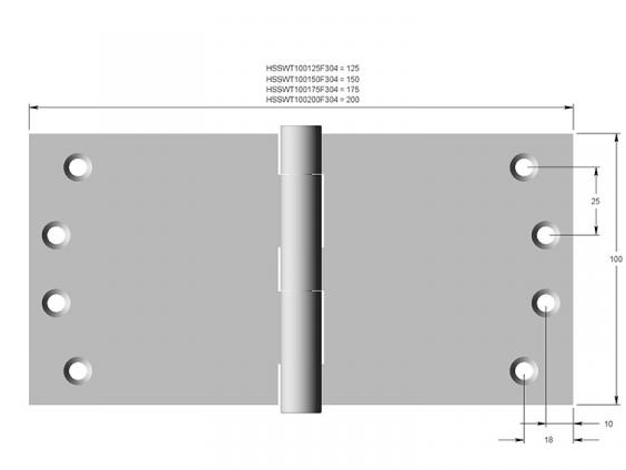 Lohala Hinge Stainless Steel 304 ,Wide Throw 100mm x 125mm x 3.5mm ,100mm x 150mm x 3.5mm ,100mm x 175mm x 3.5mm & 100mm x 200mm x 3.5mm Fixed Pin Button Tip Satin